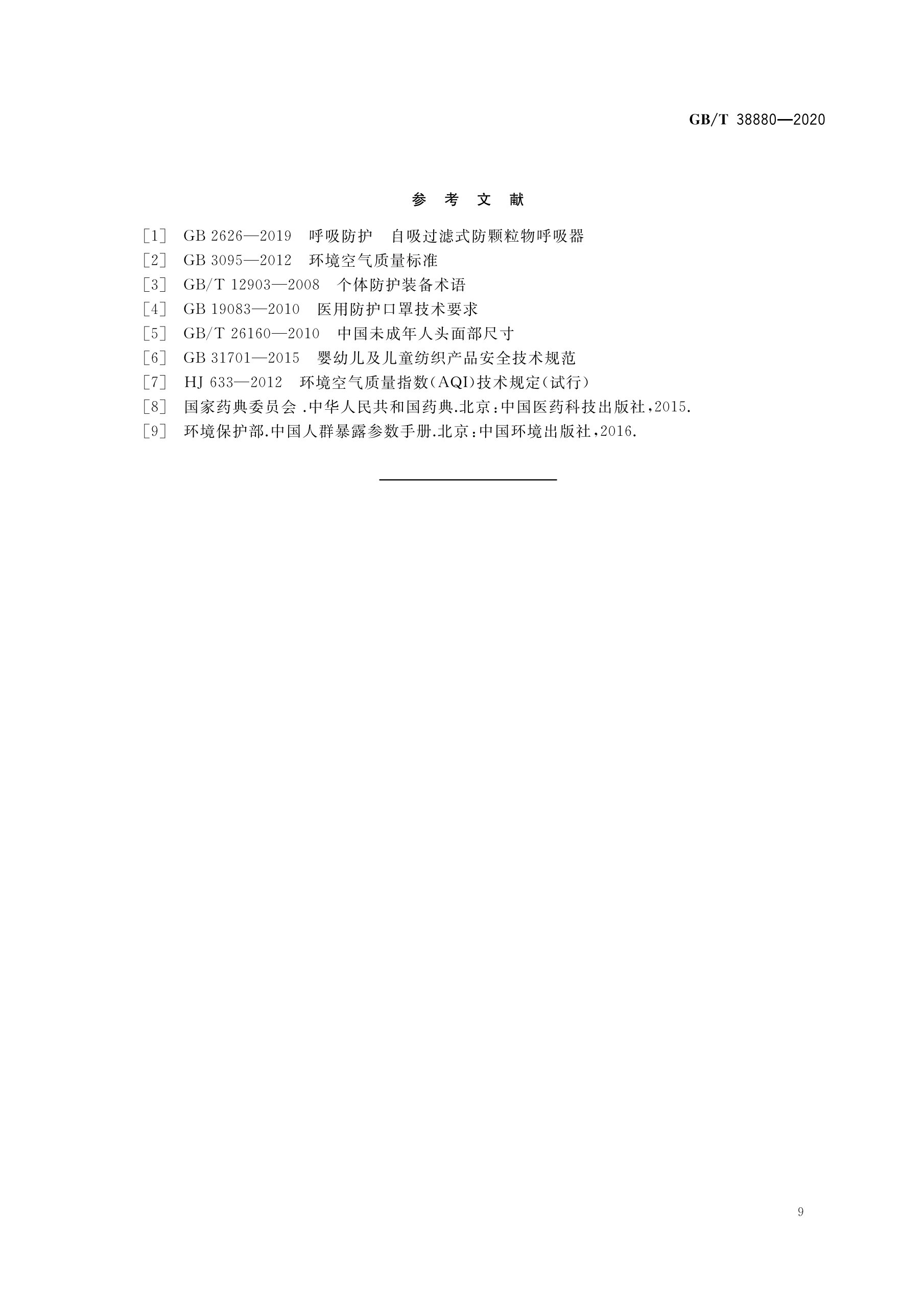 ·儿童口罩技术规范 GB/T 38880-2020