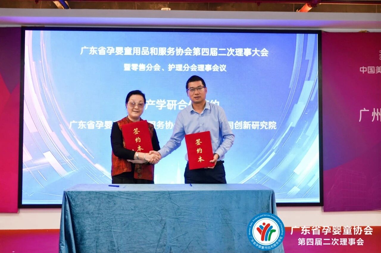 会议还进行了一项重要议程,举行了协会与华南理工大学协同研究院程建华教授团队作产学研合作签约以及母婴绿色产品创新创新中心揭牌仪式。这一举措彰显了协会推动行业科技创新、深化产学研融合的决心,为孕婴童用品和服务领域注入新的发展动能。