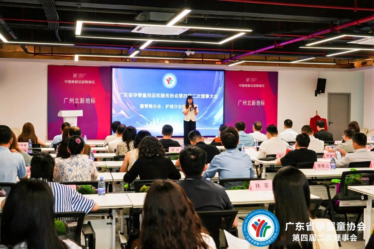 芳菲四月,阳光明媚。2025年4月18日下午,广东省孕婴童用品和服务协会第四届二次理事大会暨零售分会、护理分会理事会议在花都中国美都广州科盈化妆品有限公司总部如期召开。领导、嘉宾、协会会长、副会长、理事及代表共100多人参加了本次会议,会议由协会杨秀清秘书长主持。